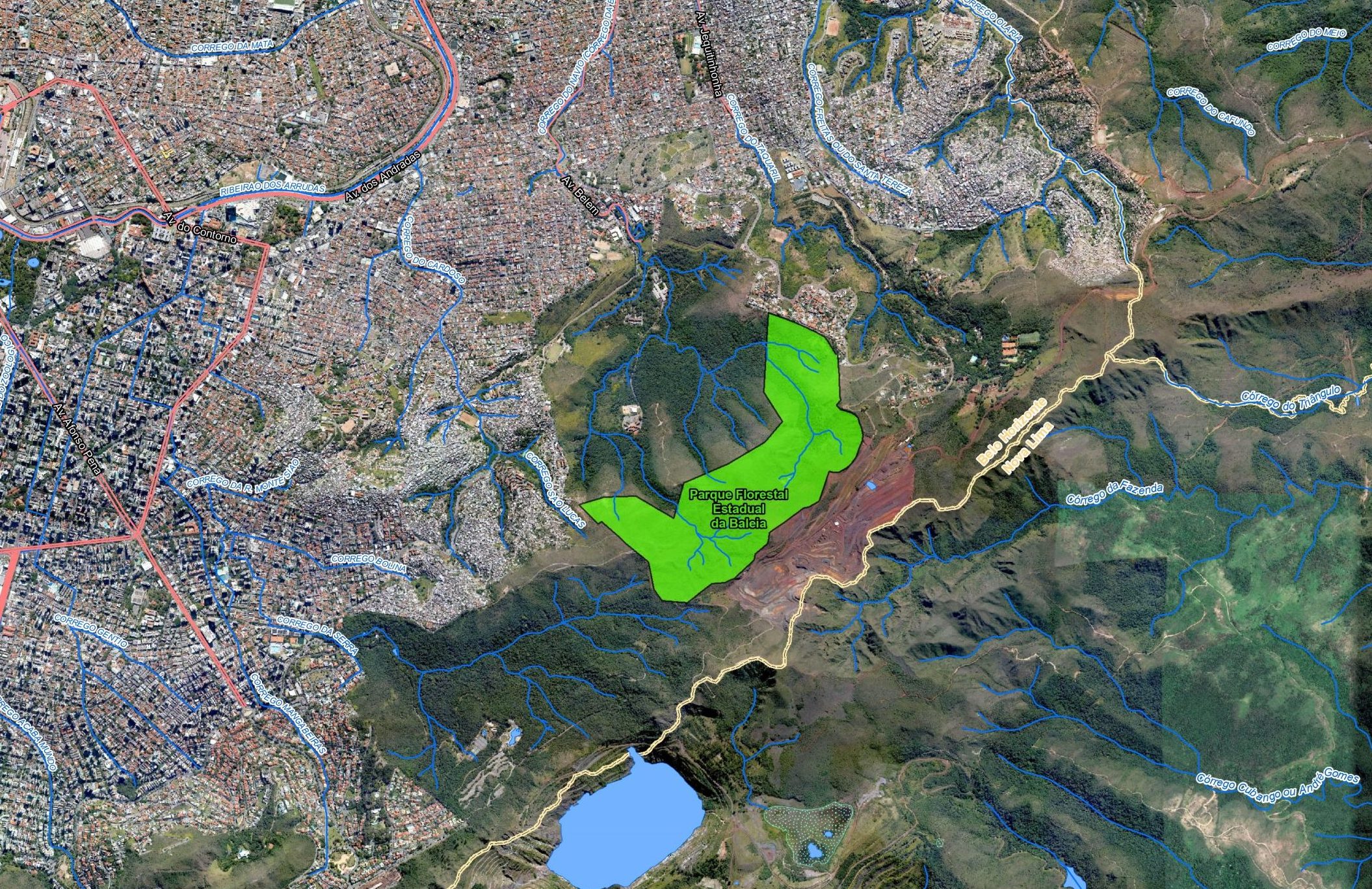 Mata da Baleia, aos pés da Serra do Curral, ainda não é totalmente protegida. Mapa: IEF.
